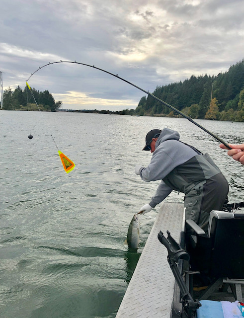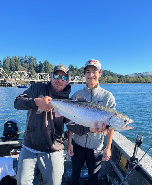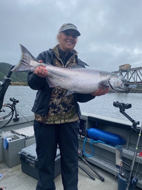 Coho salmon, also known as Silver Salmon, is a Pacific species recognized by its blue-green back, silver sides, and light colored gums. Each year, the Siuslaw River/Siltcoos Lake offers exceptional Coho salmon fishing during the months of September – November. Your guided fishing trip will be aboard a custom 28′ Koffler Special — designed for both comfort and performance on these waters.